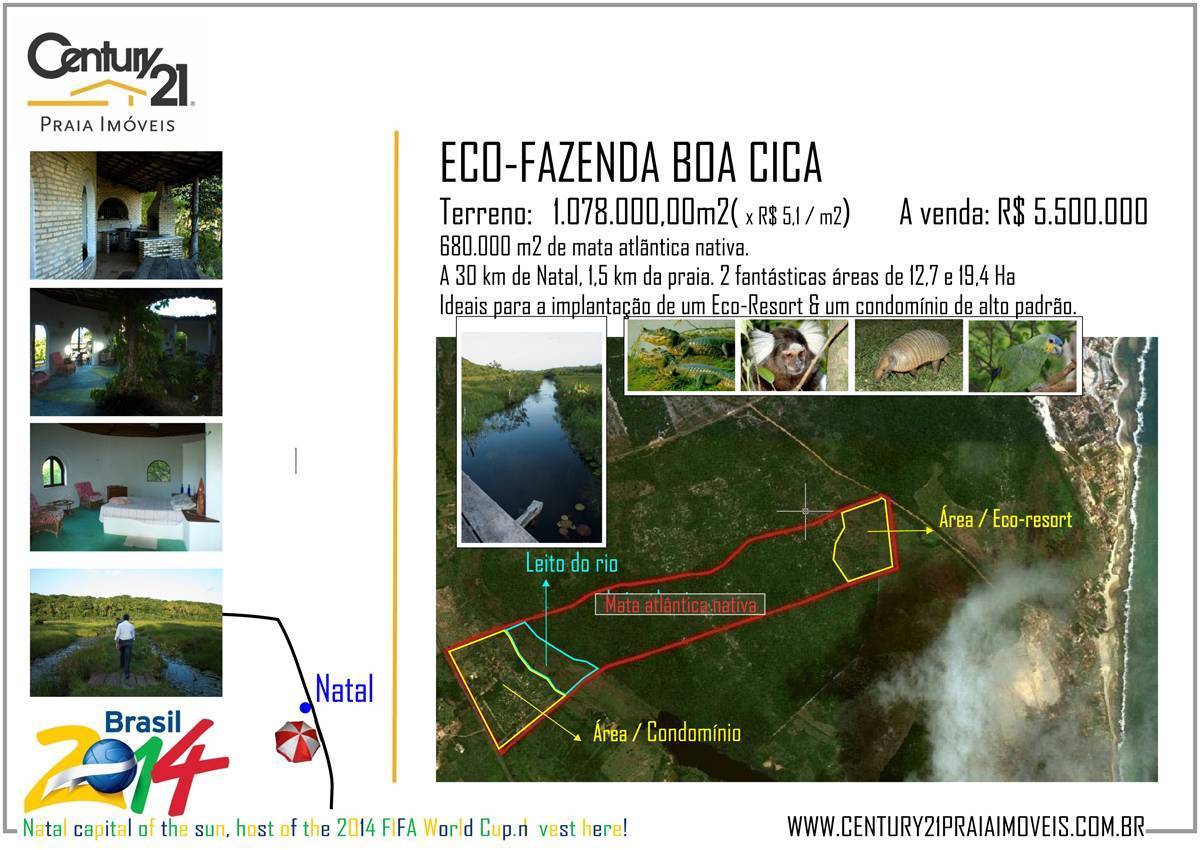 30 km from Natal-RN and 1km from seaside, this one square kilometer land is a beautiful private rain forest reserve. This is a great opportunity for investing in condominiums and Eco-resorts, when ecological tourism has become one of the best investments on earth. On the top, a beautiful sightseeing view on the sea from Natal to Pipa.