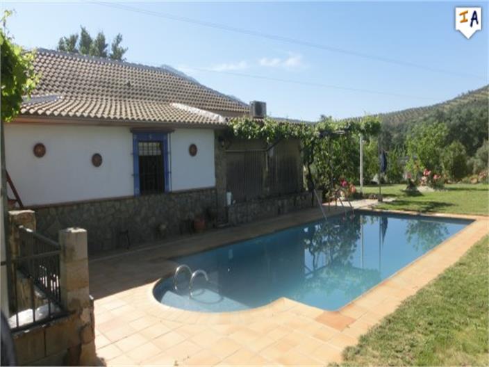 This stunning detached spacious 206m2 build single storey property boasts pure Spanish charm and is located on the outskirts of the large town of Rute in the Cordoba region of Andalucia. With a real Spanish feel this Chalet comes with 5,017m2 of the wonderful Andalucian countryside and offers 3 good sized bedrooms along with a private pool, mature gardens down to the river and an area to plant your own fruit and vegetables. On entering the grounds we have a private driveway with large iron gates opening up to a good sized parking area fitting multiple cars. From here you enter the property being welcomed by a large hallway which leads off into 3 spacious bedrooms all letting in plenty of light and a family bathroom. To the back of the Chalet you will find a large living room with open fire also used as a dining area, a sun room with working log burner, a rustic style kitchen with walk in pantry and utility room. The kitchen also gives you direct access straight out on to the patio and pool area which is great for alfresco dining. With a few finishing touches to this property you could have the perfect retreat. It could also be a great business opportunity for people looking for land to set up camping holidays. This property needs to be seen to be appreciated so book your appointment today, you will not be disappointed!!