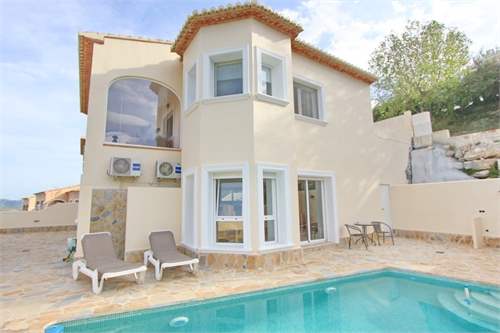 Designer 3-bedroom 3-bathroom villa, situated in the picturesque village of Campell. Numerous terrace areas to enjoy the stunning mountain and valley & sea views. The property benefit's from a swimming pool where you can relax and soak up all the Costa Blanca sunshine. This impeccable property is distributed over two levels and offers an open plan kitchen/dining room. The fully fitted kitchen comes with all necessary appliances. These areas have access to an elevated terrace. There is a single bedroom with ensuite and a storage space. Finally, on this floor, there is a wc. Downstairs there is a multi-purpose room which is currently used as an office. The living room with pellet burner, from here there is access to the swimming pool terrace. There are two double bedrooms one with fitted wardrobes and one with ensuite. Both of the bedrooms have access to the pool terrace. The property benefits from double glazed windows throughout, plenty of storage space and air conditioning h/c throughout. The villa is ideally located, within a short 2-minute drive to Campell village as well as being just a 7-minute drive to the popular village centre of Orba. with all its local amenities, shops, bars, and restaurants.