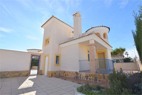 This spacious, well maintained 3 bedroom, 2 bathroom detached villa is situated in the popular area of Pinar de Campoverde, conveniently located close to a good selection of amenities and a short drive to golf courses and the stunning coastline. The ground floor comprises a living room with dining area, open plan fitted kitchen, bathroom and two double bedrooms. The first floor features the master bedroom with en suite and a large terrace with the turret for al fresco dining. The villa features the very inviting private pool in the rear garden and also offers plenty of space for off-road parking. The property also benefits from a log burner and is sold furnished.