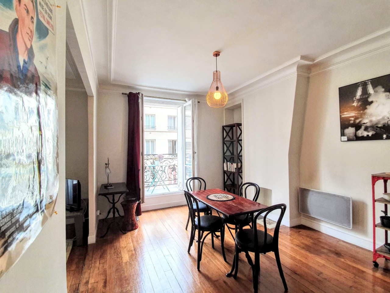 Beautiful one bedroom flat with balcony located on the 2nd floor of a period building in Paris’ 11th District, one tube stop away from Place de la Bastille. It is available as furnished from the 15th March 2020 for a minimum of 4 months. Full of character and quiet, the flat is lovingly well maintained, with wooden floors throughout. The living room is spacious and bright, overlooking the street. There is cable TV, and a leather sofa that can be turned into a double bed. The dining room includes a dining table with 4 chairs and 2 additional stools. A small desk space is tucked in a corner and the balcony invites you for a breakfast “al fresco”. The fully equipped open plan kitchen includes a fridge/freezer, combi microwave oven, induction hobs, extractor hood, dishwasher and wash machine. A kettle, coffee maker, pans, plates, cutlery and kitchen utensils are provided. The double bedroom is facing the courtyard and includes a large king-size bed, 2 bedside tables, shelves and a wardrobe for plenty of storage. The modern bathroom has a large walk-in shower and washbasin with tiled floors. The WC is separate. The area is known for its boho atmosphere, daily food market (Marche d’Aligre) and delicious cafes and restaurants. The nearest tube station, Ledru Rollin, is only a 5 min walk and there are plenty of supermarkets nearby. The property is available as furnished from the 15th March 2020 for a minimum of 4 months. There is a secure bike storage at the ground floor.