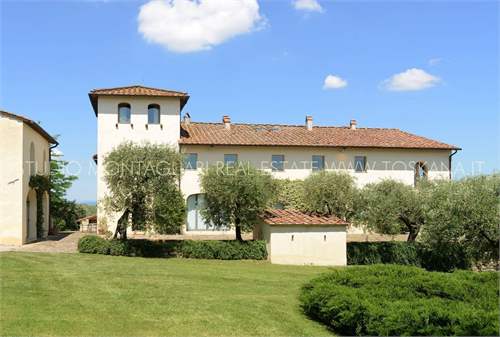 A famous Italian architect completely renovated this historic villa only 14 km from Florence, transforming a classical Tuscan villa into a modern home of immaculate design. The large, open rooms resonate with natural light that magnifies the villa's wide open spaces. At the core of the villa is a spectacular living room with double height ceilings, its height articulated by the bold lines of the open walkway linking the rooms of the first floor. Adjacent is a spacious dining room with high brick vaulted ceilings and large arched French doors that accentuate the arch of the ceiling and open onto the terrace. A secondary family room and a separate TV room are further arrayed around the central core. A kitchen, a laundry room, 2 WCs and a storage room complete the ground floor. A staircase leads to the open mezzanine and four bedrooms, 4 bathrooms and sauna, with an additional bedroom or office with bathroom in the tower. The villa opens onto a wide flagstone courtyard in back with fantastic views of the Tuscan foothills, gardens and olive trees. A covered loggia makes an ideal spot for outdoor dining. A 100 sqm guest house with one bedroom, livingroom and kitchenette lies just steps across the courtyard, while a pool is just beyond at the foot of the olive trees. The villa and guest house are immersed in 11 acres of property with well manicured gardens and olive groves. This property is a House for sale.