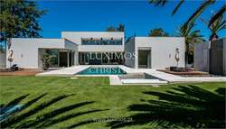 This luxury 5-bedroom contemporary-style villa with high-quality finishes is a refuge, a few minutes away from the nearest beach. The outdoors offer an ample private garden with a playground and a heated saltwater pool. Within the very distinguished features of this villa, we can find a temperature-controlled wine cellar, a cinema, a gym, an office with a large terrace area, and lastly, a guest house perfect for receiving guests. The property is located close to stunning Algarve beaches and renowned golf courses. CHARACTERISTICS: Plot Area: 3 845 m2 | 41 387 sq ft Deployment Area: 600 m2 | 6 458 sq ft Building Area: 635 m2 | 6 835 sq ft Bedrooms: 4 Bathrooms: 10 Garage: 2 Energy efficiency: C FEATURES: Air conditioning Fireplace Kitchen Surround sound system Central vacuum system Wine cellar with control temperature Cinema room Solar panel Alarm system with active security Automatic irrigation Video-porter Collection Outdoor heated salted water swimming pool Indoor garden Garden Playground area for children Garage Internationally awarded, LUXIMOS Christie's presents more than 1,200 properties for sale in Portugal, offering an excellent service in real estate brokerage. LUXIMOS Christie's is the exclusive affiliate of Christie's International Real Estate (1350 offices in 46 countries) for the Algarve, Porto and North of Portugal, and provides its services to homeowners who are selling their properties, and to national and international buyers, who wish to buy real estate in Portugal. Our selection includes modern and contemporary properties, near the sea or by theriver, in Foz do Douro, in Porto, Boavista, Matosinhos, Vilamoura, Tavira, Ria Formosa, Lagos, Almancil, Vale do Lobo, Quinta do Lago, near the golf courses or the marina. LIc AMI 9063 This property is a House for sale.