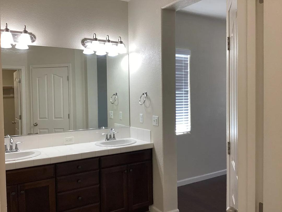 This two-story home built in 2009 has approximately 1700 square feet with a great room, dining area, open concept kitchen with huge island, tile and laminate flooring throughout, blinds, granite counters, gas range, dishwasher, garbage disposal, built-in microwave, laundry room, central heat & air, ceiling fans in master bedroom, master bedroom has 2 walk-in closets. 2 car garage with electric opener, covered back patio, landscaped front yard with automatic sprinklers. Located close to Clovis East High School, Reyburn Intermediate school, Freedom Elementary, parks, shopping and freeways.. From E. Ashlan Ave, go south on N. Locan Avenue, turn right on E. Ramona Way, left on N. Leanna Ave, then right onto E. Giavanna Ave. 12 month lease required. Renters insurance required. Pets very strictly negotiable (1 small pet under 20lbs).