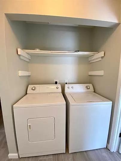 Newly renovated 2 bedroom 1 bath unit on a quiet circle. The remodeled kitchen includes a refrigerator, electric oven/stove top, and dishwasher. Laundry closet includes a washer and dryer hookup. Living room has sliding glass door that opens on to private fenced patio. Locked storage room off of private patio