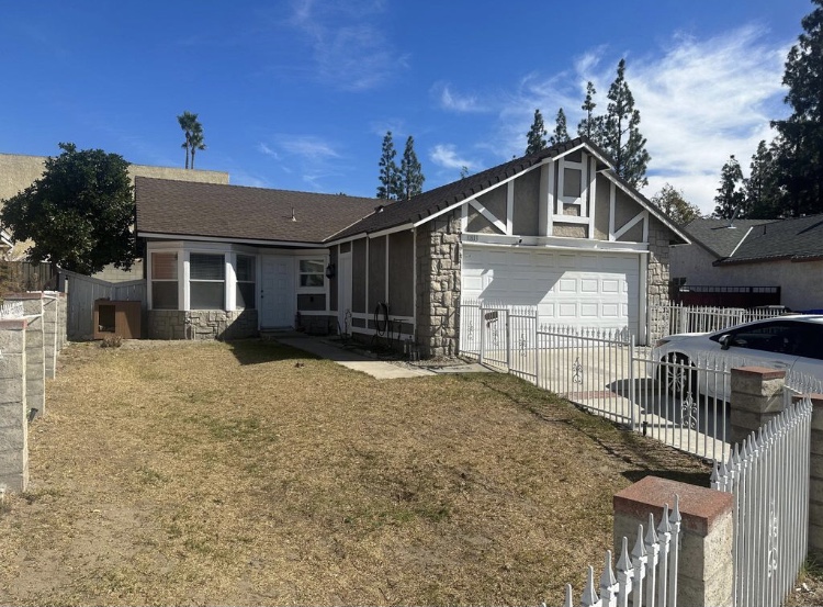 Three bedroom house with a fenced front yard, and four trees in the backyard including a lime tree, Guava tree, Orange tree and Apple tree. main bathroom has recently been renovated. ceiling fans in every room. Attached two car garage.
