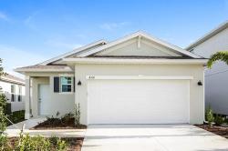 This Babcock Ranch rental home gives you three bedrooms and two bathrooms in 1,461 square feet. You'll love the living room's attractive vinyl plank flooring. Sliding glass doors in the living room open up to the outdoors. The kitchen pleases with its ample cabinetry and gleaming stainless steel appliances, including an ice-making fridge and a microwave. Enjoy the size of the main bedroom and the privacy of its en suite bathroom, which holds a walk-in closet big enough for all your apparel, a double sink vanity with storage space, and a walk-in shower.