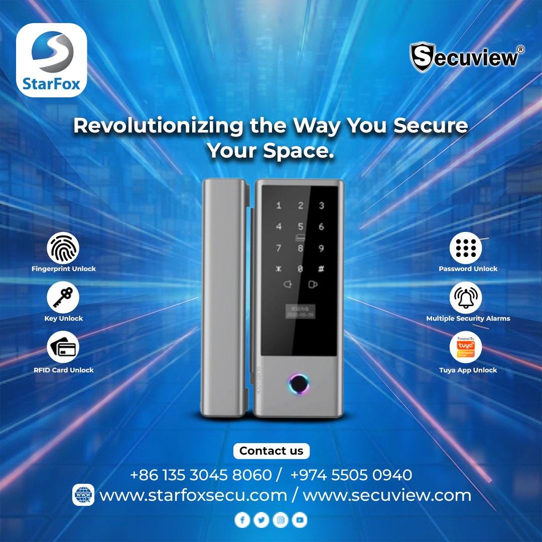 SECUVIEW Smart Home Glass Door lock is equipped with digital features that improves the Security of Your Home or Office. You can unlock from your mobile phone, with finger print, with password, Comes with a emergency key, It is Alarm Enabled and it is integrated with Smart Home System making it suitable for your glass door.