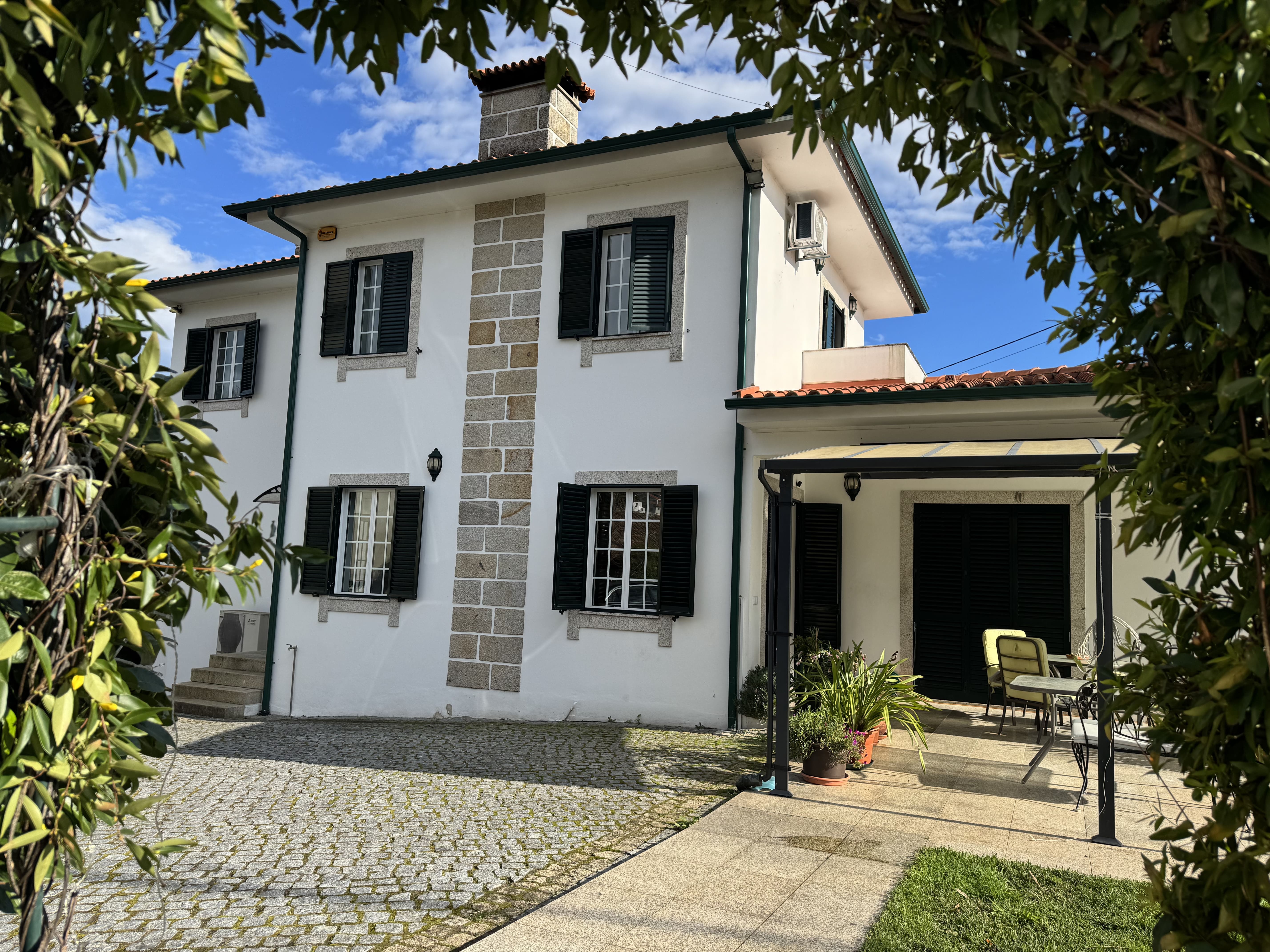 Discover this magnificent villa, set on a 2,600 m² plot, where refinement and comfort come together to offer a unique living experience. Located just a few minutes from Vila Verde and Braga, this residence combines the tranquility of the countryside with the convenience of city life. With five spacious bedrooms, two of which are ensuites, and built-in wardrobes, this home is designed to accommodate your family in the utmost comfort. The social areas are equally impressive, featuring a dining room, living room, and open-plan kitchen, ideal for entertaining and creating unforgettable moments. For added convenience, the property includes a functional laundry room, four modern bathrooms, and a central vacuum system for practical and efficient cleaning. The landscaped garden is a true retreat, enriched with various fruit trees and plants that bring a natural and relaxing touch to the surroundings. The large pool with a winter cover, is perfect for year-round enjoyment. On the ground floor, you'll find two extra rooms—ideal as a cozy TV room or a secondary dining space for family gatherings and celebrations. With incredible sun exposure, top-tier insulation, and spacious, bright interiors, this villa offers an inviting, sophisticated atmosphere that’s hard to resist. The beautiful outdoor spaces with privacy and a prime location, make this property an oasis of tranquility and luxury. Opportunities like this don’t last long—schedule your visit today and discover the home you’ve always dreamed of!