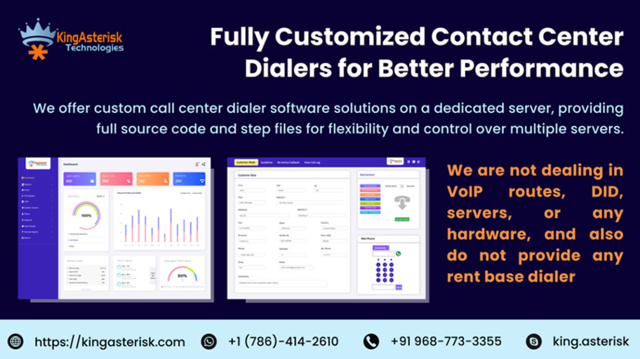 for improving customer engagement optimizing call operations and driving sales. At KingAsterisk Technology we are providing a fully customized contact center dialer that specific needs to your business