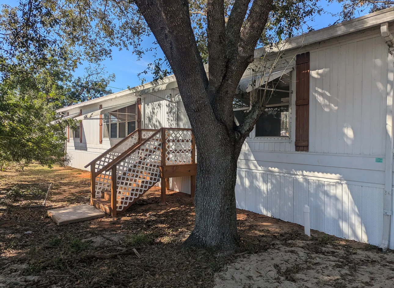 Very spacious double wide! This property was recently renovated and the finished product is fantastic! Each room has ample space and each part of the home gets tons of natural light throughout the entire day. The living room and kitchen are huge giving you creative freedom when decorating the inside of the house. Two brand new wooden decks sit on the right side of the house giving you space for relaxing and outdoor time. This property has every appliance included, even washer and dryer.