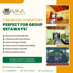 HuliKalluResort, BestResortInSakleshpur, GroupStay, LuxuryRetreat, NatureGetaway, 3 Bedroom Dormitory