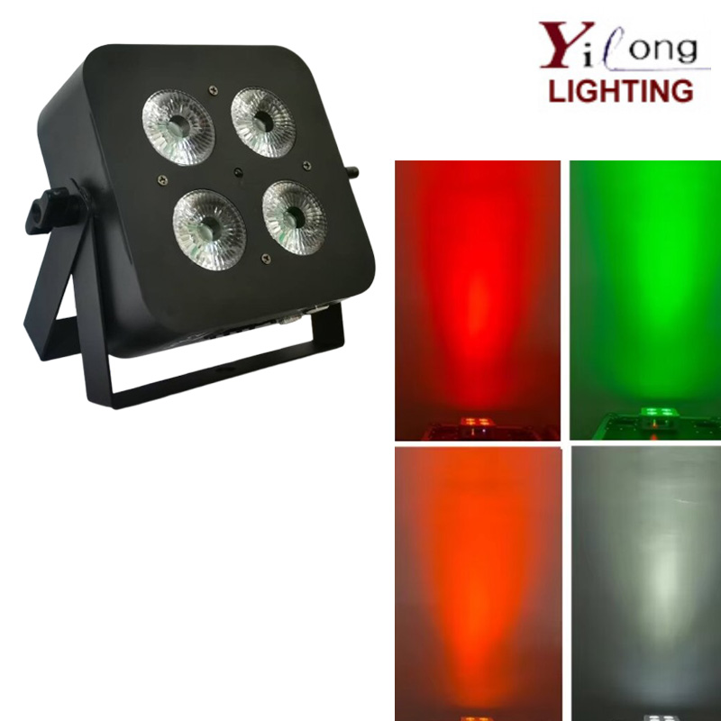 4X15W RGBWA+UV LED, Battery and dmx wirelss transmitter built in. Remote control and WIFI control.