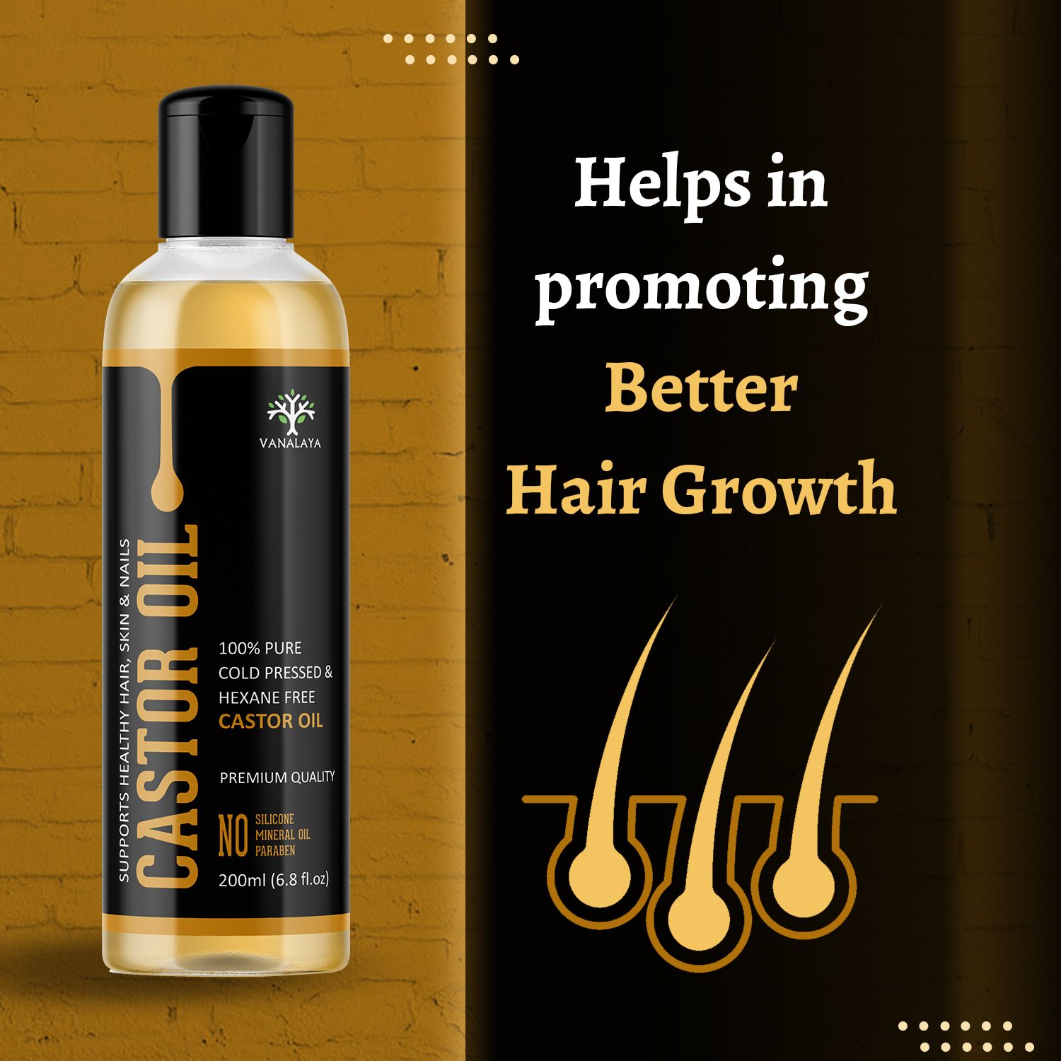 Vanalaya's cold-pressed castor oil is excellent for promoting hair growth. It nourishes the scalp and strengthens hair from the roots, effectively reducing hair loss and encouraging thicker, healthier hair growth. Buy castor oil hair online now to get instant results.