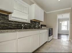 Renovated 3 bedroom 1 bath home with a large front and backyard. The kitchen has plenty of cabinets, a refrigerator (will be installed before tenant moves in), an electric stove, and granite countertops. Has a family room and dining room combo for your entertaining needs. Brand new air conditioner and hardwood flooring. All rooms have ceiling fans with remotes. Also has washer/dryer hookups. There is covered parking with a long driveway to accommodate multiple vehicles. If you need lots of outdoor space this home is perfect for you! Close to shopping, banking, and restaurants.