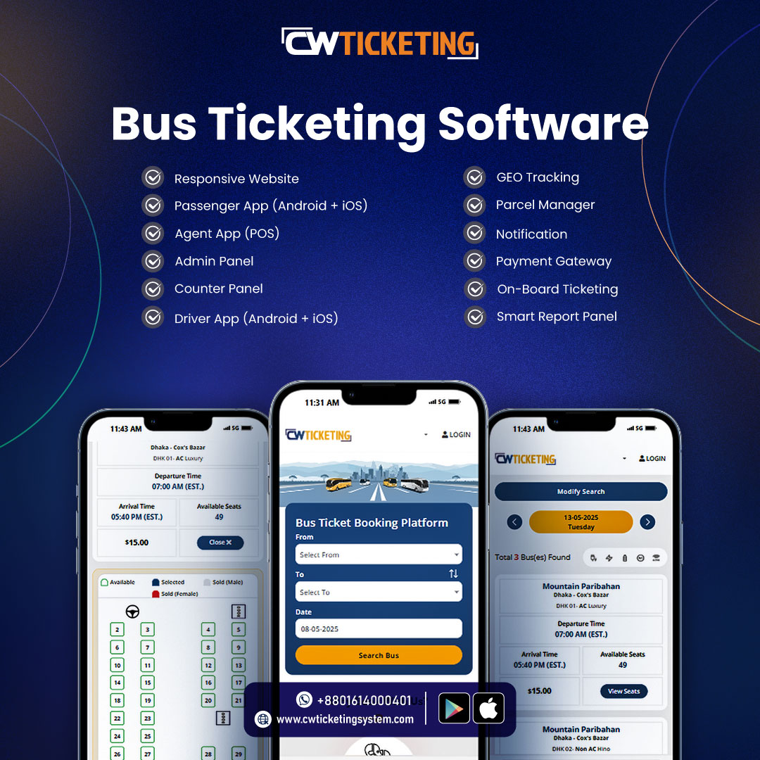 Take full control of your operations with CW Ticketing’s advanced system, built specially for bus owners and agencies. Manage everything from seat bookings, ticket sales, driver tracking, parcel management, to real-time reporting — all from one powerful platform!
