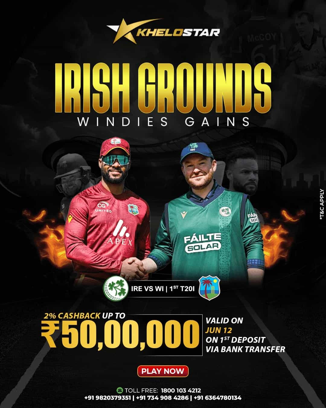 The IRE vs WI 1st T20I match is happening now, and Khelostar is making it more exciting for online gaming fans. On June 12, enjoy a 2% cashback offer up to ₹50,00,000 on your first deposit via bank transfer. Khelostar is a popular online gaming platform where cricket lovers can enjoy fantasy games, live match fun, and big rewards. The site is easy to use and safe for everyone. Whether you're into cricket or other sports games, Khelostar brings great action right to your screen. Don’t wait—join Khelostar today and turn your game time into win time!