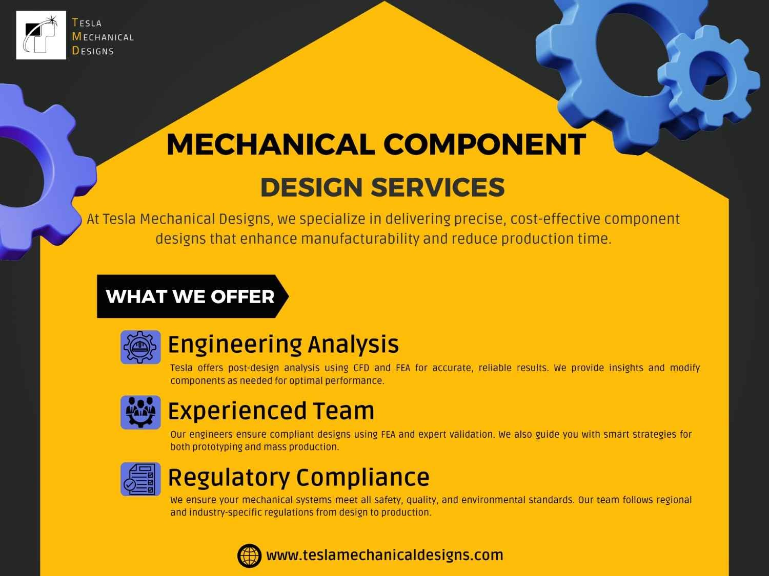 Tesla Mechanical Designs offers specialized component design services tailored to meet the precise demands of product manufacturers and engineering firms. Our services enable businesses to transform their concepts into manufactural, efficient, and cost-effective components. • Custom component design services optimized for functionality and performance