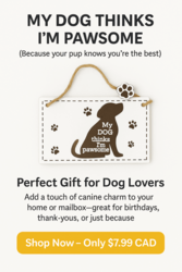 Surprise a pet parent with this adorable wooden sign that says “My Dog Thinks I’m Pawsome.” Perfect for decorating walls, doors, or adding to a thoughtful gift basket. Whether it’s a birthday, thank-you, or just because, this sign brings smiles! Available now for only $7.99 at SpartaCandles. com – handmade with care and full of charm!