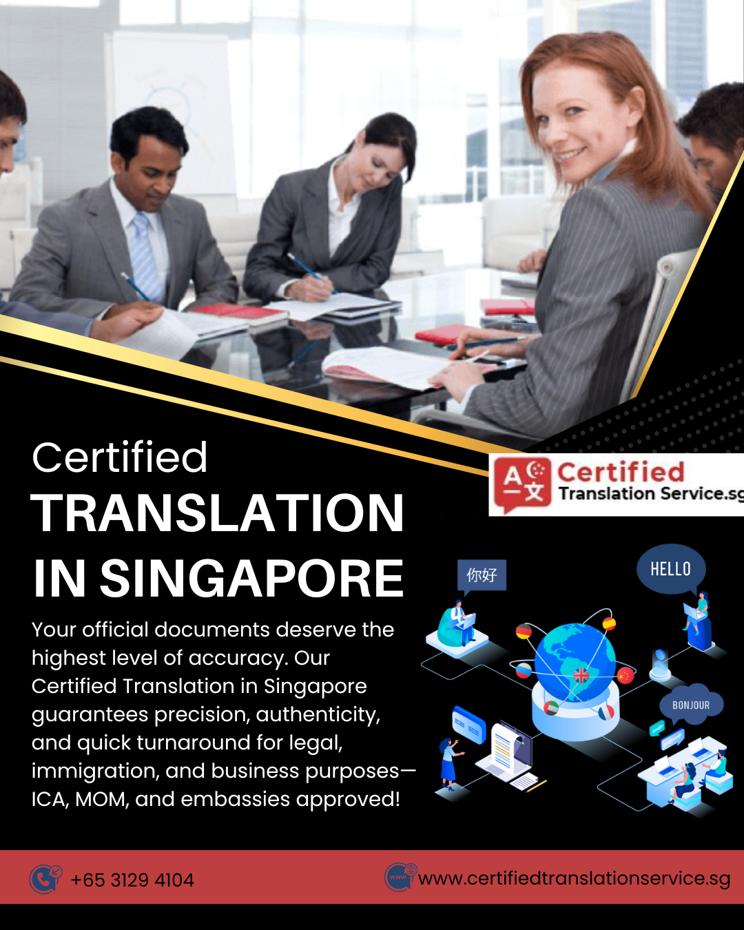 Your important documents deserve more than just a quick translation—they need certified expertise. Our Certified Translation in Singapore guarantees translations that are accepted by official authorities locally and abroad. We translate personal, legal, academic, and business documents into over 80 languages, ensuring compliance with ICA, MOM, embassies, and more. Each project is handled by experienced, qualified translators and verified for quality and legal accuracy. Our certification includes official translator declarations and formatting tailored to the document's purpose. We pride ourselves on efficiency, discretion, and exceptional service. Whether you’re applying for PR, studying overseas, or conducting cross-border business, rely on our Certified Translation in Singapore to support your goals with confidence. Keywords: