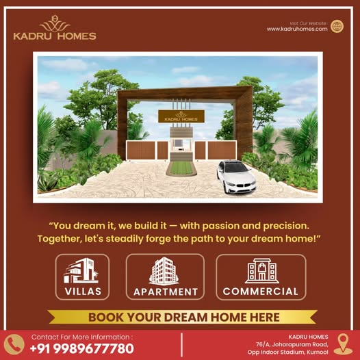 Explore 3BHK luxury villas in Kurnool with Kadru Homes. Our gated community villas offer premium features like landscaped gardens. With a perfect combination of modern architecture and serene surroundings, Kadru Homes makes luxury living accessible for you and your family.