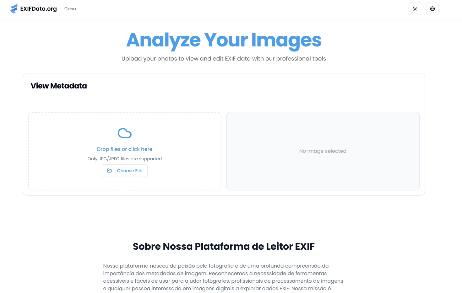 View and analyze EXIF data instantly with EXIFData. org. Extract camera model, exposure time, aperture, ISO, GPS location, and more. Upload an image to start!View and analyze EXIF data instantly with EXIFData. org. Extract camera model, exposure time, aperture, ISO, GPS location, and more. Upload an image to start!