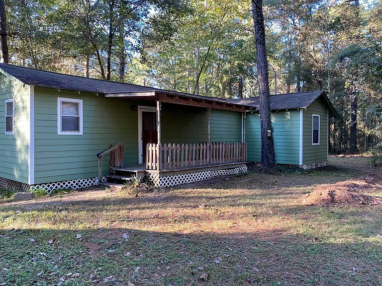 This charming home offers a peaceful country retreat surrounded by beautiful pine trees. Inside, you'll find an open-concept layout that seamlessly connects the kitchen, dining, and living areas perfect for comfortable everyday living. The utility room is conveniently located off the main hallway. Two spacious bedrooms sit on either side of the bathroom, which features a tub/shower combination. Relax and take in the serene views from both the front and back porches.