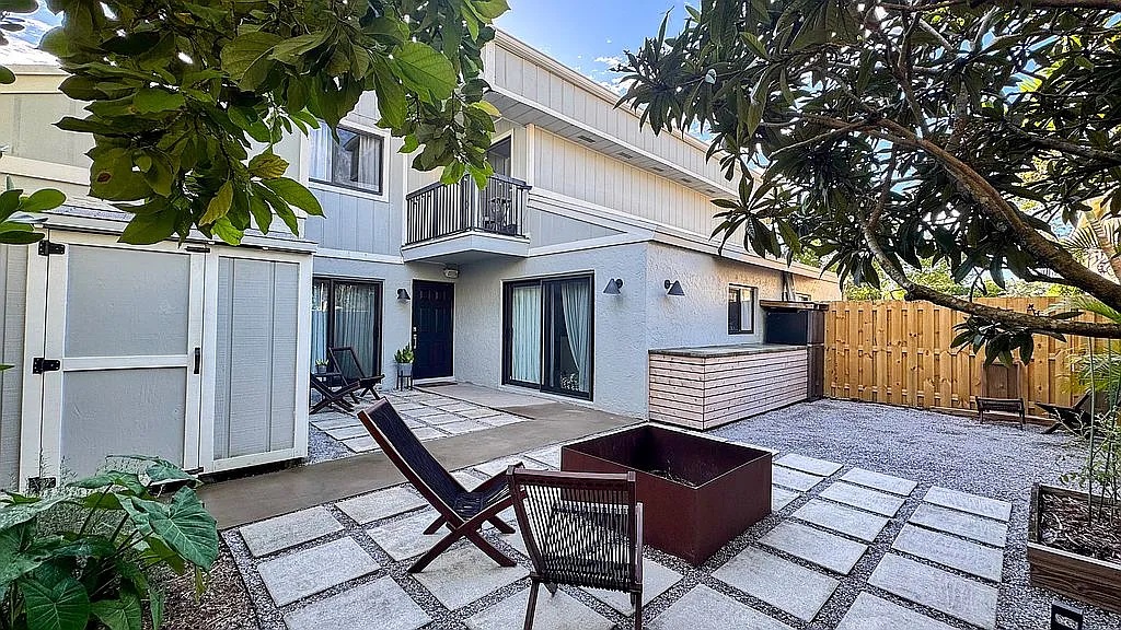 Fully remodeled 3-bed, 2.5-bath townhome in Lago West Cluster Homes in Plantation! Stylish and modern throughout, this home was completely renovated within the last few years. Features tile downstairs and laminate flooring upstairs, a spacious open-concept kitchen with stainless steel appliances, extensive counter space, and a custom dry bar with kegerator. The primary suite is conveniently on the main level, offering a walk-in closet and updated ensuite bath. Upstairs are two large bedrooms, each with double closets; one includes a private balcony and a beautifully remodeled full bath. Enjoy a private fenced patio with outdoor fridge, storage, firepit area, and a fruiting avocado tree. Impact windows, new AC (2021). The roof is maintained by the HOA and was replaced in 2018. HOA is $451/monthly. Two assigned spaces in front of the home and plenty of guest parking. Modern, warm, and move-in ready! Close to great schools, parks, shopping, restaurants, etc.