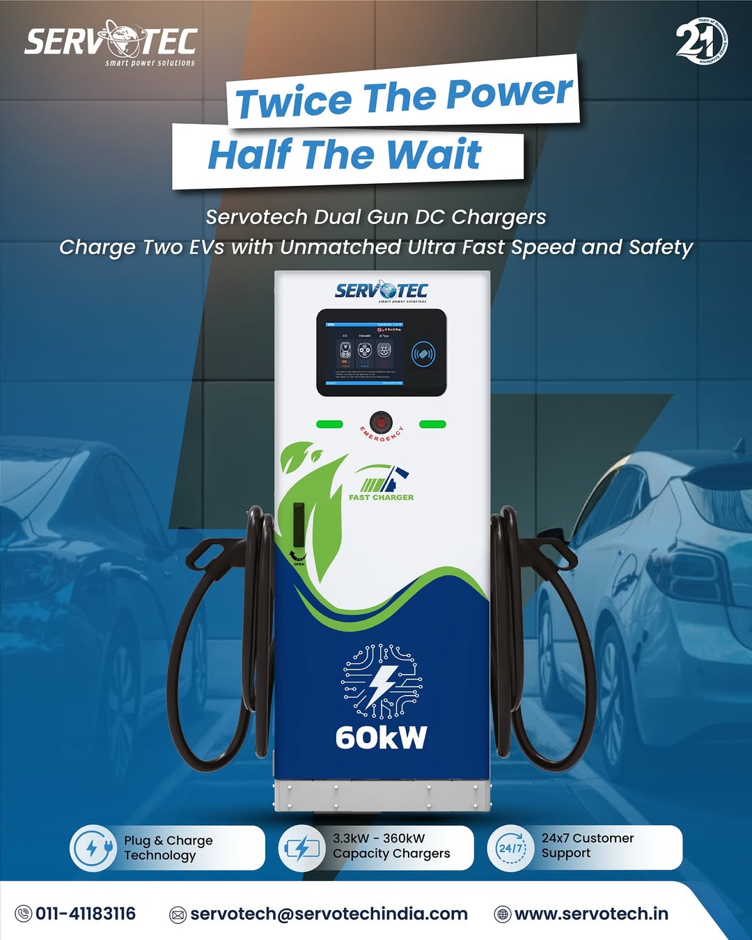 Double efficiency, double impact. Servotech Dual Gun DC Chargers are built for heavy traffic, smart cities, and the next wave of India’s EV revolution. Servotech Dual Gun DC Chargers | Servotech DC Charger