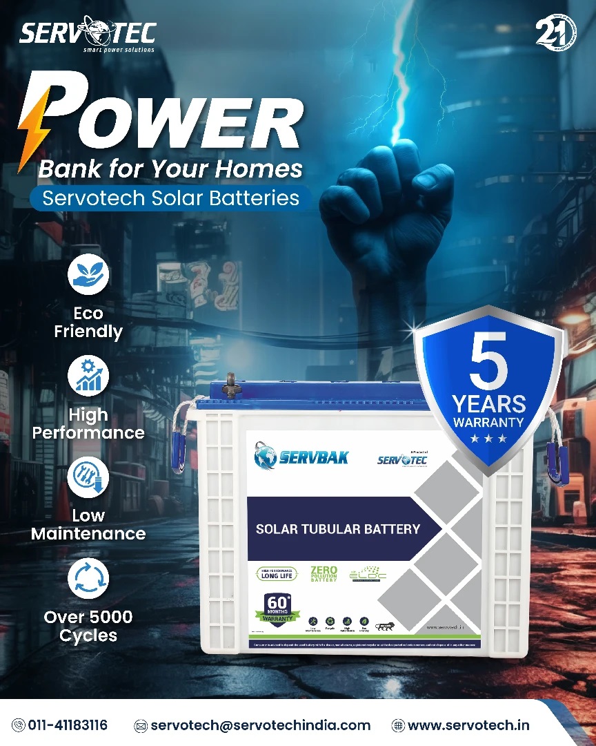 Store during the day, use it at night. Servotech solar batteries keep your life powered on even when the sun goes down. [Solarbattery, solartubularbattery, solarstorage, solarbatteryforhome, solar energy]
