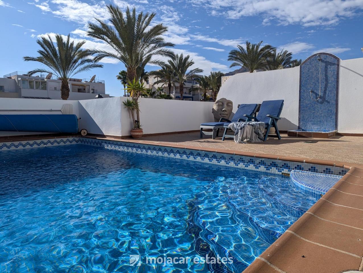 Villa Margarita Two-storey villa with private swimming pool for 6 people located in quiet residential area in Mojacar Playa a few minutes walk to the beach, commercial centre and all amenities. The top floor has 2 bedroom and a full family bathroom. There is another bedroom downstairs with en-suite bathroom and a Cloakroom. Fully equipped separate kitchen with fridge-freezer, ceramic hob & oven, microwave, coffee maker, toaster and all other kitchenware and utensils. Separate laundry room with washing machine, extra freezer and tumble drier. Lounge with fireplace and dining area with patio doors leading out to pool and patio area. Bedroom 1 ( downstairs) has a double bed ( 1.35m) built in wardrobe and air conditioning unit and en-suite bathroom Bedroom 2 & 3 are upstairs. Bedroom 2 has a double bed (1.50m) built in wardrobe and air conditioning unit. Bedroom 3 has 2 single beds, built in wardrobe and air conditioning unit. Bathrooms There is one full family bathroom upstairs and another fully bathroom and Cloakroom downstairs. Private swimming pool and outside area equipped with table & chairs, armchairs and sun loungers. Air conditioning in all rooms Fireplace Internet connection Private swimming pool Short distance to waterfront Location For the exact location please click on "enlarge button" to see on Google maps, above right. This villa is located in Calle Cadiz, a quiet residential street a few minutes' walk to beach and all amenities. Nearest beaches are Playa del Cantal and Playa Piedra de Villazar, near the Commercial Centre and the main roundabout. Approximately 300 metres to the front where you will find a good selection of shops, bars, restaurants and other amenities. Very central beach spot in the area of El parador and Commercial Centre * Villa Margarita -- #ME 2685 * Villa * 3 bedrooms * 2 bathrooms * Sleeps: 6 people * Land area 500 m2 * Constructed area 110 m2 * Telephone No * Internet Yes *** General Features * Wi-Fi * Television - terrestrial * Air-conditioning * Washing machine * Iron *** Kitchen Features * Separate Kitchen * Fridge * Oven * Microwave * Coffee maker * Toaster * Kettle * Kitchen utensils