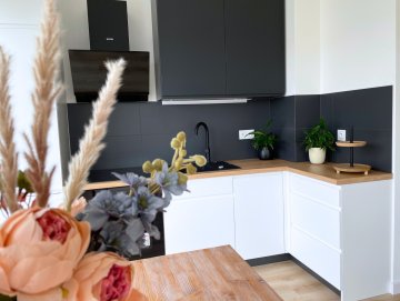 Ten nowoczesny apartament łączy komfort, funkcjonalność i elegancję. Każdy detal wnętrza został przemyślany, aby codzienne korzystanie z mieszkania było przyjemnością.