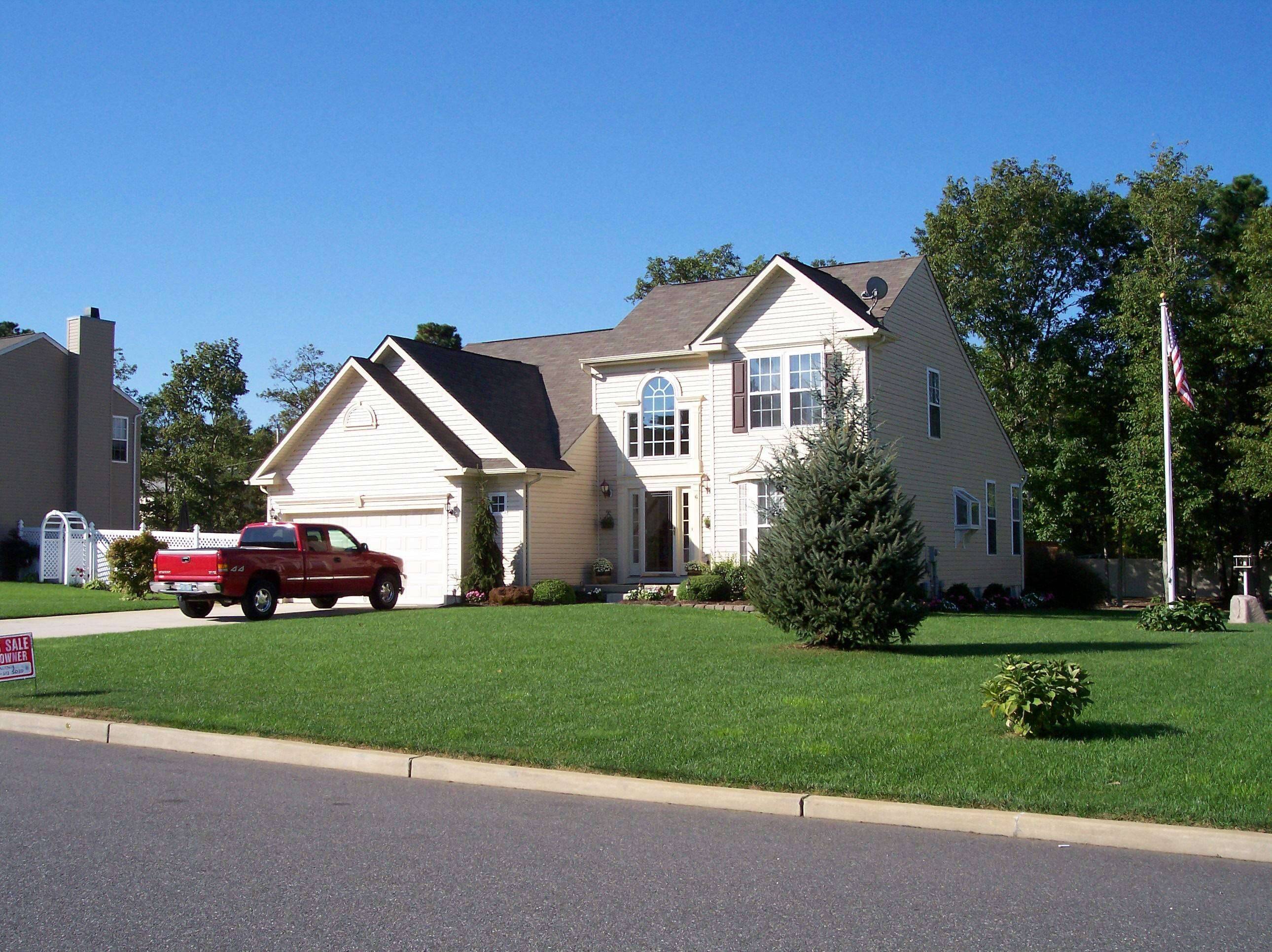 Modern contemporary style, open floorplan with upstairs balcony overlooking large greatroom. 2 full bathrooms and 2 half bathrooms. Master bedroom and bath on 1st floor, 2 large bedrooms and full bath on 2nd floor. 1st floor also has 2-story entry foyer, dinning room, kitchen, dinette area, washer/dryer room and a half bath. Basement has a large finished family room, half bath, and a storage/utility room. 2 car attached garage with remote garage door opener, work bench, and storage shelves. Double wide concrete driveway. Back door opens onto wood deck with stairs down to concrete patio. 2 fireplaces, one woodburning in great room, one gasburning in family room. Ceramic tile floors in kitchen/dinette, entry foyer, and all bathrooms. wall to wall carpit everywhere else. Custom crown nmolding and trim on 1st and 2nd floors. 6 ceiling fans,, garden window and corean countertops, dishwasher and microwave oven in kitchen. Gas hot air heat and central air conditioner. great landscaping, large trees in backyard. 10x14 ft. storage shed with electric service. 6 zone underground sprinkler system with dedicated well. outdoor lighting. all appliances included, Located in upscale section of Waretown