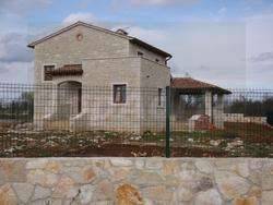 Newly built villa with exceptional quality in construction and materials. Nice views of the surrounding and distant sea views. Quiet location near Kanfanar (5 km) and close to Rovinj and the sea (12 km). 162m2 living area + 1220m2 plot. 4 bedrooms, 3 bathrooms, big thatched garden level terrace and terrace on the first floor. Hardwood floors, tiles, 120 year old wooden beams. Partially furnished. Connections for central gas heating and electrical heating. The price does not include finishing the landscaping and the pool. Clean ownerhsip papers and construction permits.