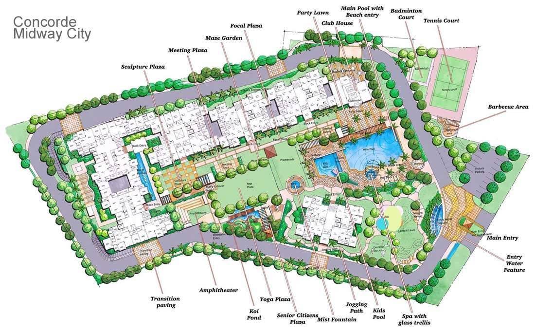 World-class facilities at Midway City: Club house with indoor games, 3 Swimming pools (gents, kids and ladies pool), Multi gym, Jogging track,, Aerobic room,, Internet connectivity, Launderettes 24 hr security, Mist fountain, Covered car parking,, Amphitheatre, tennis and badminton court. Table tennis, water treatment plant, sewage treatment plant and rain water harvesting also available.
