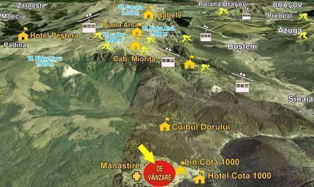 Away from center of Sinaia, at an altitude of 1000m, peaceful atmosphere, amazing view, near 2 hotels and a monastery, large opening (150m) to the National Road 71, this land for sale is a very good investment.